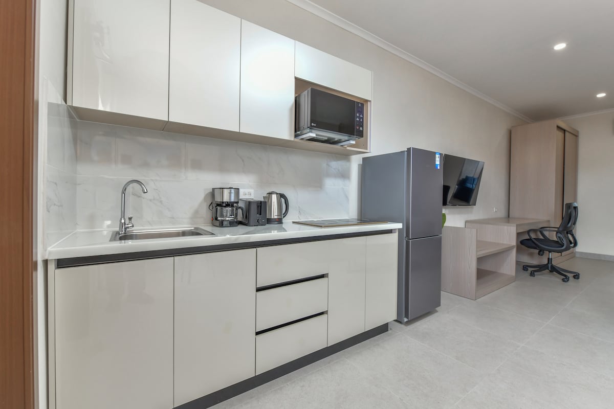 Добро пожаловать в нашу НОВУЮ студию с современным дизайном, расположенную в Golden Leaf Suites and Apartme ✔1 кровать размера King size, ванная комната. ✔Полностью оборудованная кухня. ✔В жилом комплексе есть бассейн, шезлонги, беседка на открытом воздухе, гриль для барбекю. ✔Менее 5 минут езды на машине от пляжей, супермаркета, ресторана, казино, ночных клубов. ✔15 минут ходьбы до пляжа Бушири, супермаркета, кафе, Wendy's. ✔ 8 минут на машине до пляжа Игл-Бич. Эта современная, чистая и комфортабельная студия — идеальное место для одиночных путешественников, пар и небольших семей.
