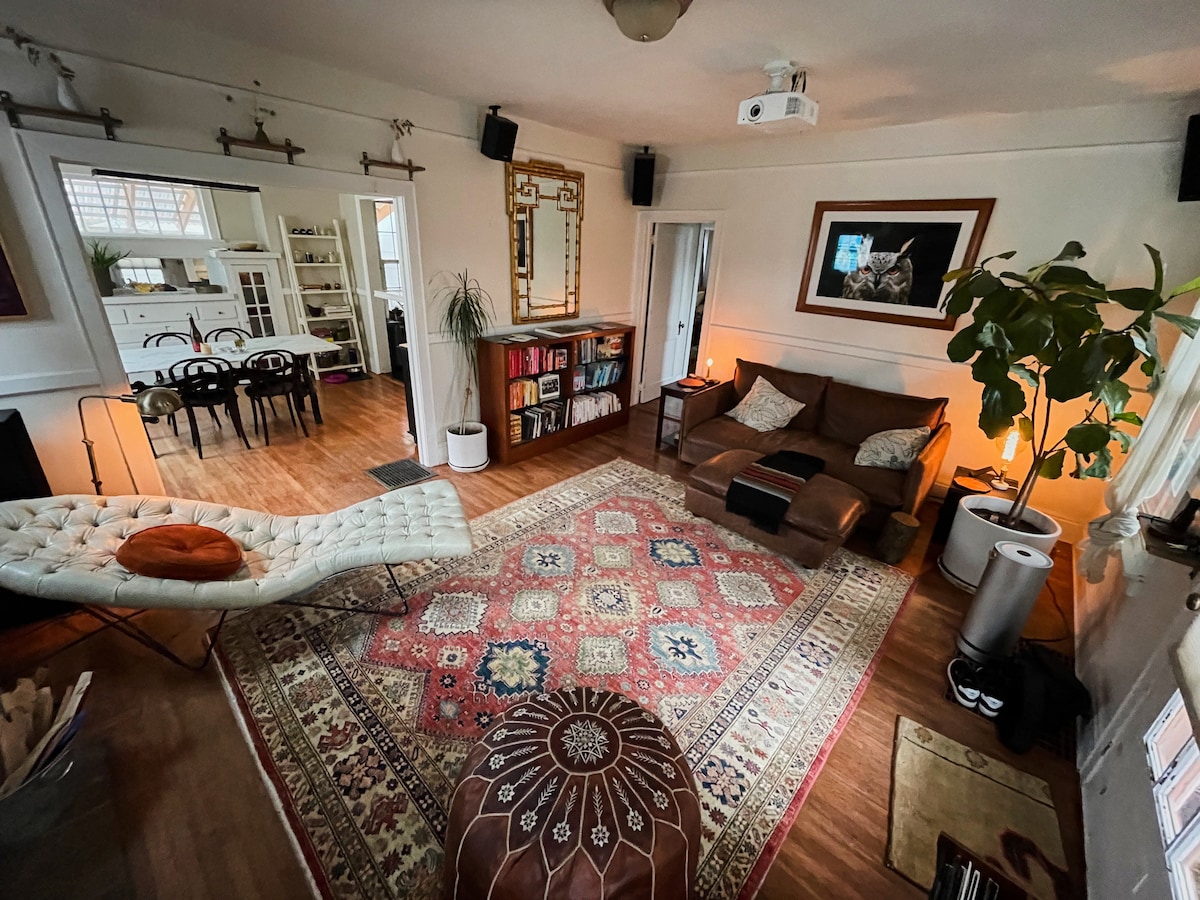 Бунгало Backyard Bungalow, включенное в тур ADU в Портленде, является идеальным местом для отдыха во времена неопределенности. Благодаря своему уединенному пути, удаленному от основного дома, он предлагает столько уединения, сколько захочет. Оказавшись внутри, его сводчатый потолок длиной 16 футов и освещенная солнцем гостиная открытой планировки удивляют чувством простора и комфорта. Внутреннее расположение SE находится в нескольких минутах ходьбы от ресторанов и кафе Дивизиона St., тележек с едой, парков и игровых площадок, а также является "байкерским раем".