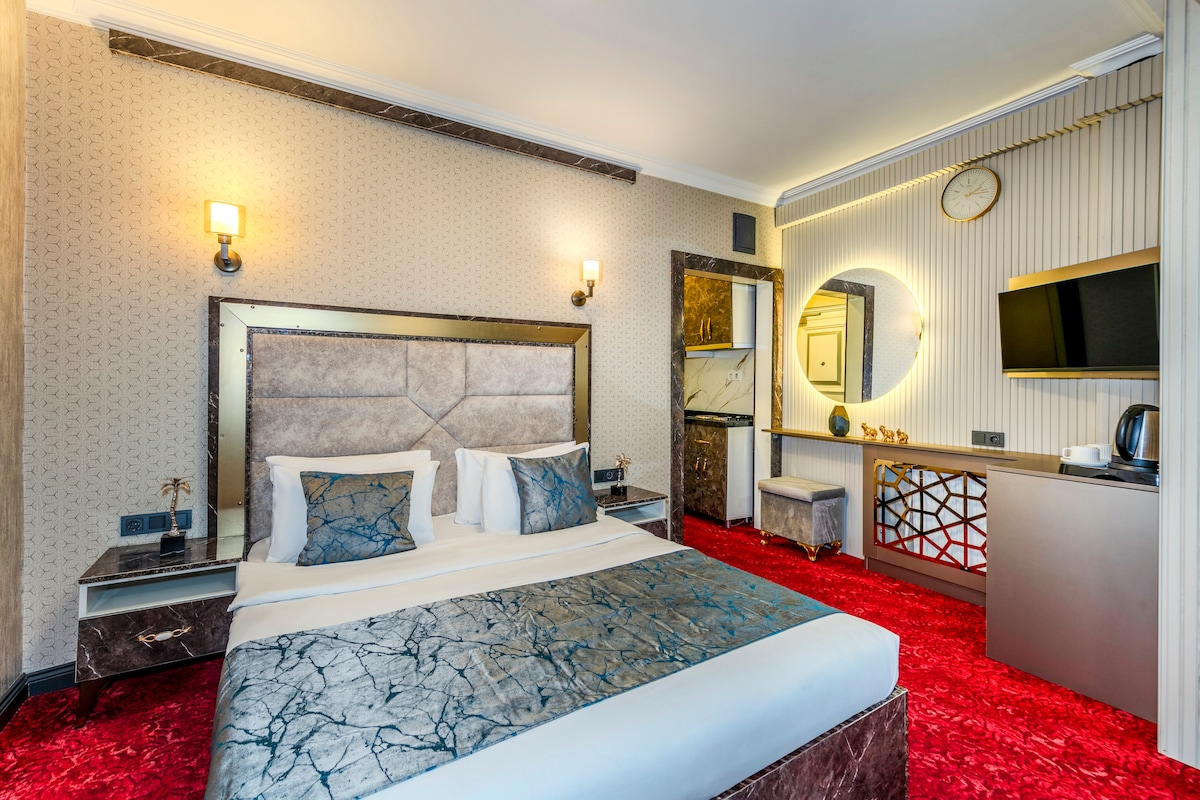 Номер Deluxe расположен в центре площади Таксим, в нескольких шагах от оживленной улицы Истикляль. Исследуйте близлежащие кафе, рестораны, торговые центры и художественные галереи. Наши недавно спроектированные номера оснащены лучшими удобствами для спокойного отдыха. На всей территории отеля предоставляется бесплатный Wi-Fi, а лифт обеспечивает легкий доступ ко всем номерам. Независимо от того, приехали ли вы сюда по делам или для отдыха, номер Deluxe обеспечит вам незабываемое пребывание в одном из самых интересных районов Стамбула.