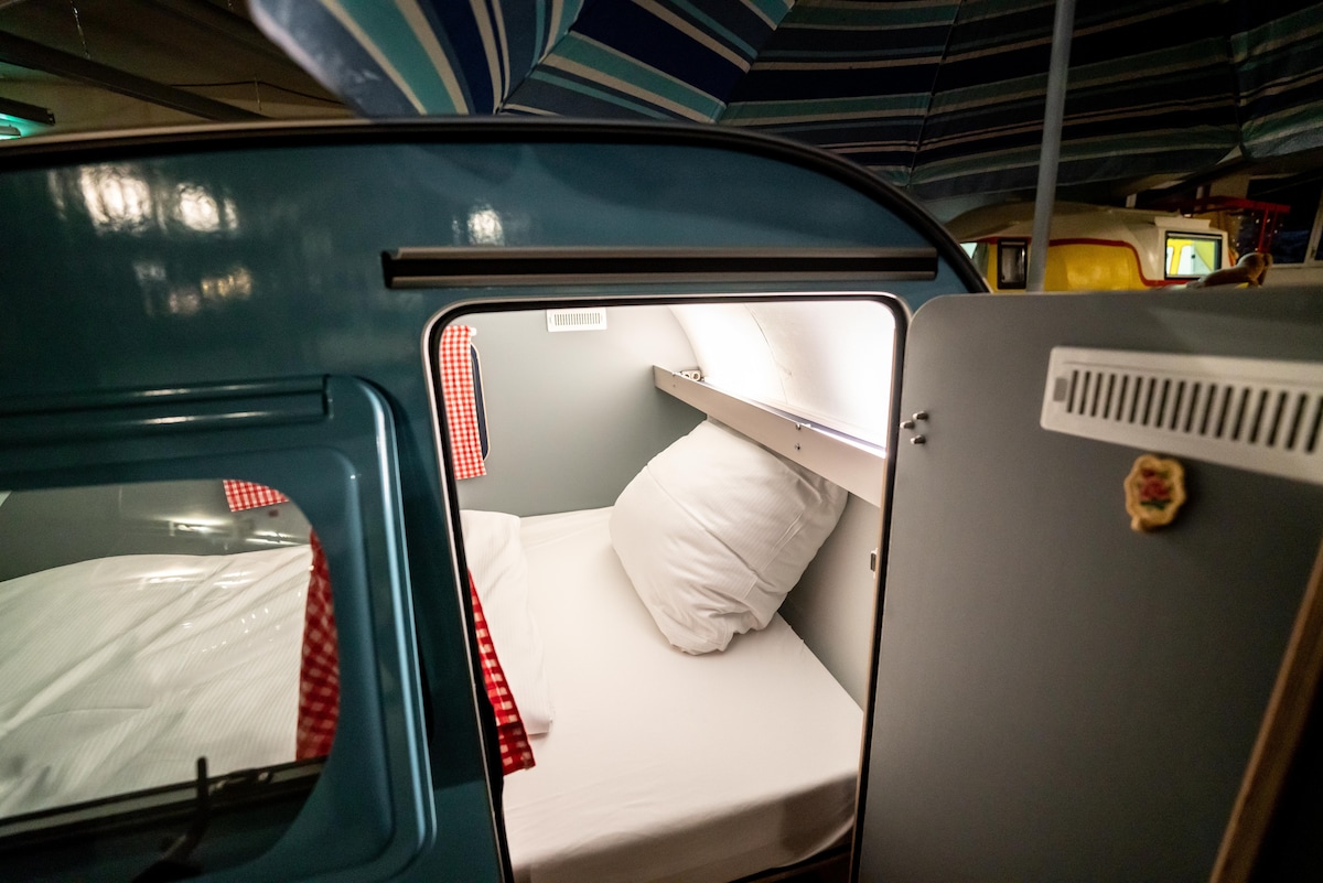 Наш караван "Schneckenhäusle" МАЛЕНЬКИЙ, но потрясающий! Наша милая раковина улитки уютная, приятная, компактная и многое другое... Или вашим детям нужна своя империя? Как отдельный детский сад, этот автомобиль быстро помещается рядом с родительским. Он лучше всего подходит для одного человека, так как заполнен матрасом. Или, если вы хотите обняться и засыпать с любимым человеком, это идеально подходит для вас.