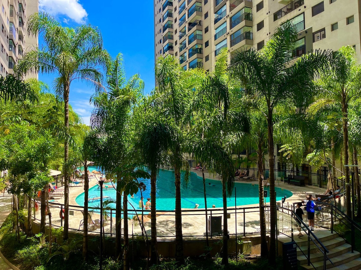 Modern, clean and organized space. Complete for a comfortable and safe stay. The apartment has a spacious suite, with generous closets, a single bedroom complete with work/study bench and the living room with a sofa that can be used as a double bed. Full kitchen, self check-in and covered parking space with valet.