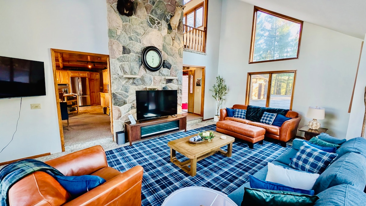 Welcome to your private lakefront retreat in the beautiful Northern Michigan, thoughtfully designed for large families and responsible groups seeking space, comfort, and privacy - ideal for every season. Secluded yet accessible & set on a 4-acre peninsula, this 6-bedroom, 3.5-bath home offers over 5,000 sq ft of living space, private beach access, a private outdoor heated pool, and amenities that allow everyone to relax togetherβwithout feeling crowded.