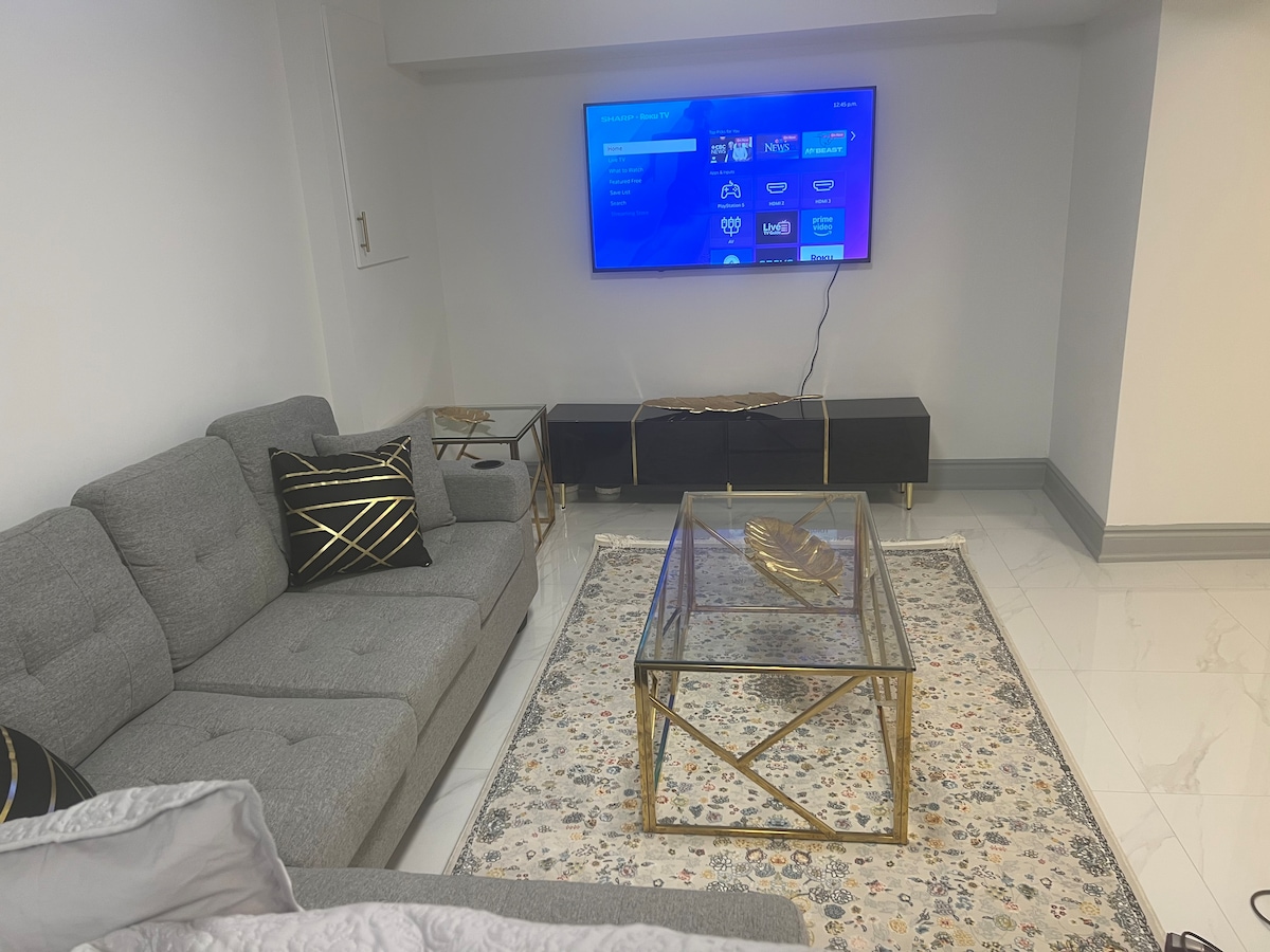 Добро пожаловать в мой дом, где я рад предложить вам просторную, подходящую для семейного проживания квартиру в подвале с полноразмерными окнами, 2 большими спальнями (кровати размера Queen size), ванной комнатой с 3 предметами, полностью оборудованной кухней (плита, холодильник, микроволновая печь, раковина), обеденной и гостиной зонами. Наслаждайтесь выходом на задний двор с барбекю, костровищем и зоной отдыха на открытом воздухе. Отдельный вход через боковую сторону дома, без лестницы. 1 парковочное место на подъездной дороге включено. Чисто, уютно и готово к вашему прибытию! :)