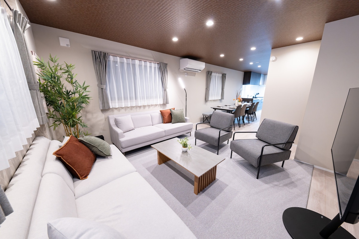 Недавно построенный целый дом удобно расположен недалеко от станции без трансфера из аэропорта Ханеда и Нарита! Гостиная размером примерно 12 татами заставляет вас почувствовать себя как дома. Вся мебель и техника новые и высокие рабочие характеристики. Постельное белье меняется после каждой уборки. В числе удобств ванная комната с феном, посудомоечной машиной и ванной комнатой, а также душевой кабиной и двумя умывальниками и 2 стиральными машинами. Отлично подходит для больших групп и длительного пребывания.