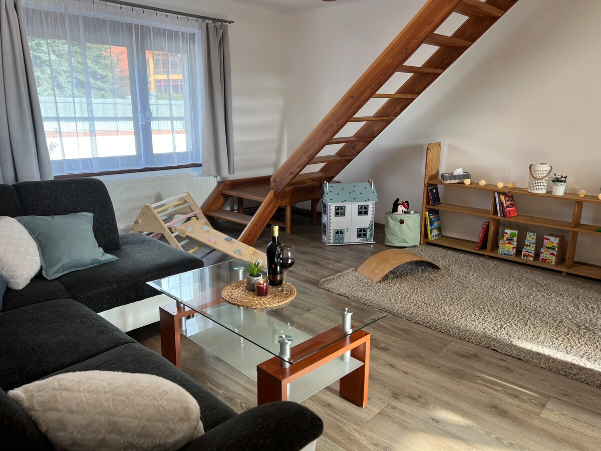 Это уютная квартира в центре города, идеально подходит для двух человек. Квартира оборудована кухней с плитой, духовкой, холодильником, обеденной зоной с чайником и кофеваркой. В главной комнате есть кровать, стол с двумя креслами, телевизор и комод. Квартира расположена в самом сердце Чешского рая, рядом вы найдете скалистый город из песчаника с замком Вальдштейн, замком Груба Скала и замком Троски. Идеально подходит для активного отдыха - возможность сплава по реке Йизера, ухоженные велосипедные дорожки и десятки туристических направлений.