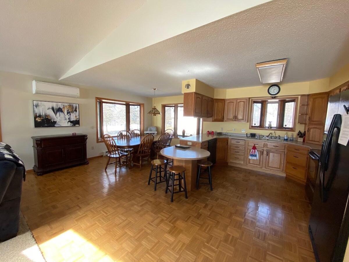 Этот семейный домик с 2 спальнями и 1 ванной комнатой, которым мы приглашаем вас насладиться. Познакомьтесь с тем, как вы живете в воде. Эта ванная комната с 2 спальнями и 1 спальней - наш семейный домик, и мы приглашаем вас насладиться ею так же, как нам. Из каждой комнаты в доме открывается вид. Здесь есть лодочные и пляжные развлечения, рыбалка и костры, подледная рыбалка и недалеко от трасс для снегоходов, в нашем круглогодичном домике есть всё. Мы предлагаем много дополнительных услуг без дополнительной оплаты!