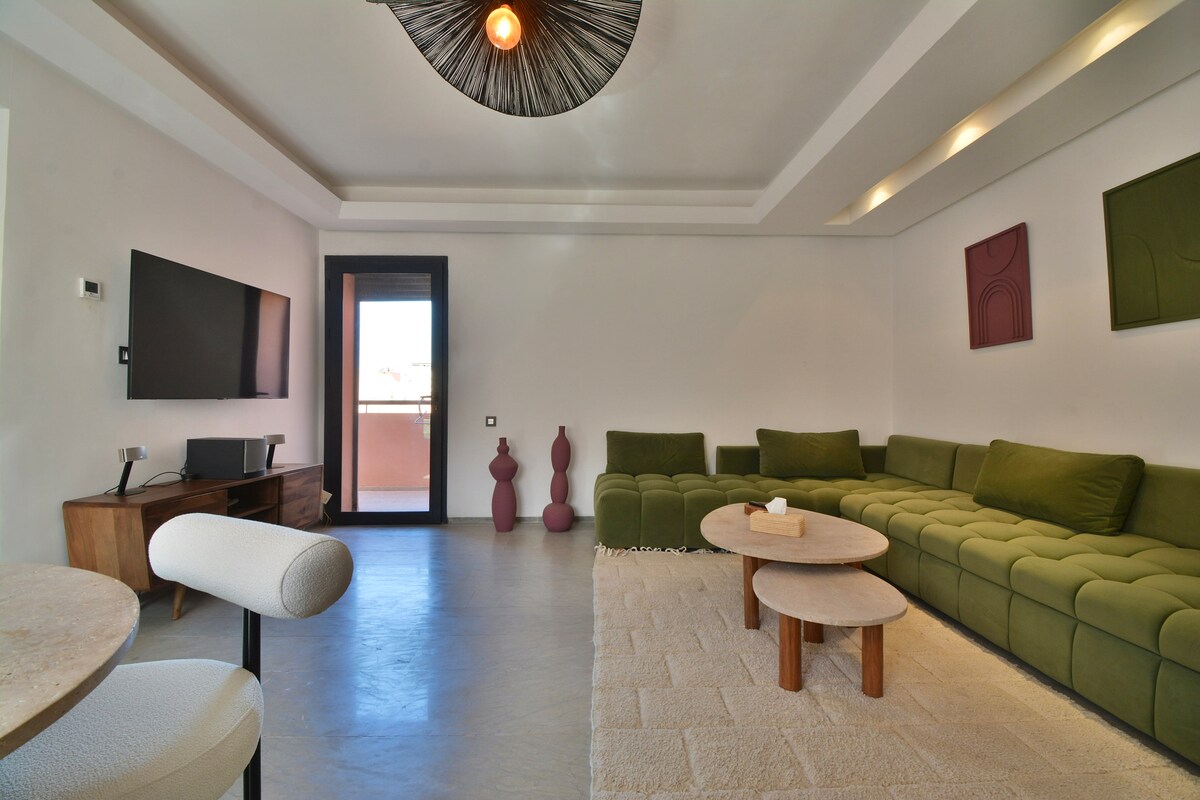 Experience the charm of Marrakech in this stylish apartment, centrally located in the vibrant Hivernage area. A unique blend of traditional craftsmanship and modern comfort, featuring handmade furniture sourced from the Atlas Mountains. Designed by an artist. With a welcoming atmosphere. Whether you’re exploring the nearby cultural attractions or enjoying the vibrant local scene, this well-appointed apartment serves as the perfect base. Enjoy the convenience of staying in the heart of Marrakech