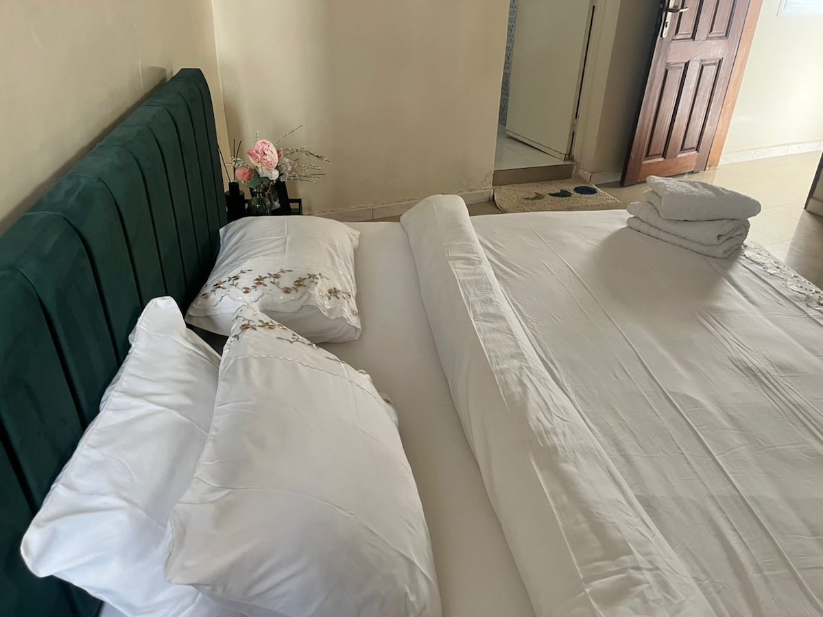 Discover this stunning, bright, and spacious apartment, perfect for a comfortable stay, located on the 2nd floor of a serene house. It features an air-conditioned master bedroom with an ensuite bathroom, a modern living room with a dining area, a fully equipped kitchen, a relaxing balcony, and a guest restroom. With high-speed Wi-Fi, Netflix, and a water heater, enjoy a peaceful setting in Sacré-Cœur 3 (2 minutes from the VDN), close to shops and main roads.
