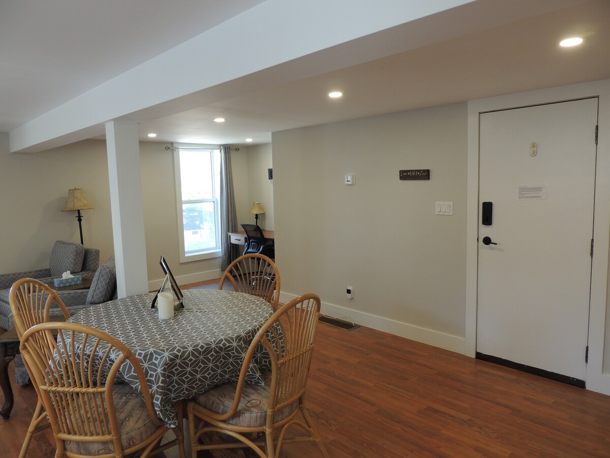 Добро пожаловать в ваш идеальный отдых в центре Вудстока! Эта уютная квартира на втором этаже сочетает в себе комфорт и удобство. Наслаждайтесь 2 уютными спальнями с роскошными матрасами для отличного ночного сна! Полностью оборудованная кухня и гостиная с открытой планировкой, телевизором Roku и Wi-Fi. Во время пребывания у нас вы сможете легко добраться до местных магазинов, ресторанов, больницы и шоссе 401/403. Исследуйте близлежащий парк Саутсайд или прокатитесь по живописной сельской местности и пешеходным тропам!