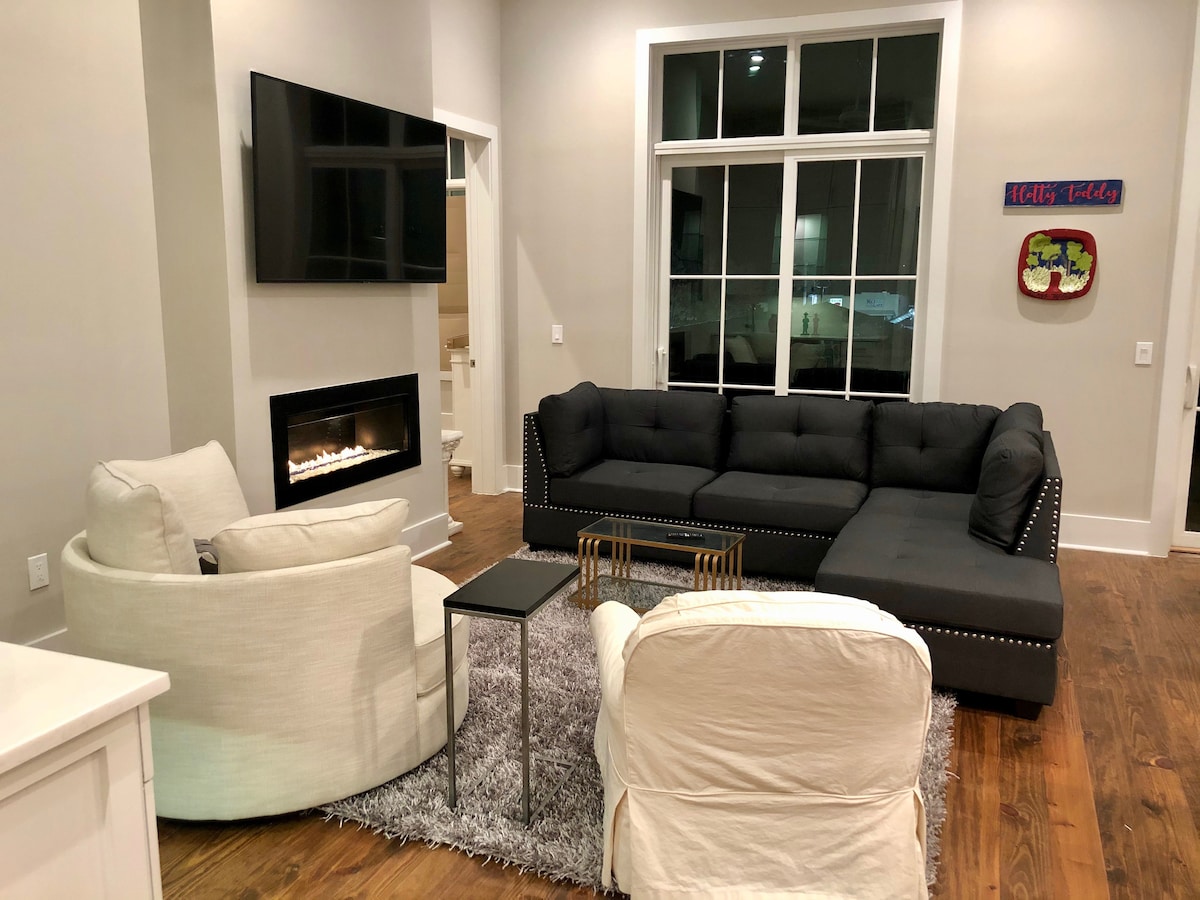 Просторная, современная квартира с непревзойденным расположением недалеко от Оксфорд-сквер. 11 ' 6" потолки с огромными окнами. Комфортная мебель, умные телевизоры. Wi-Fi. Газовый камин. Палуба на крыше с видом на площадь. Мокрый бар, охладитель вина, льдогенератор. Безопасный крытый вход, одно гаражное парковочное место. Хорошая кухня, просторные ванные комнаты, стиральная машина и сушилка. Сундук со льдом, стулья и другие предметы для пикника или рощи.
