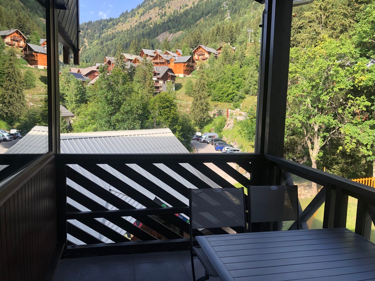 Небольшая студия на 4 человек в центре этой семейной горнолыжной станции рядом со всеми удобствами, включая 3 подъемника, открытых зимой и летом, доступ к 249 км трасс Grand Domaine. Основное жилое пространство: диван-кровать, который превращается в двуспальную кровать, телевизор и Wi-Fi, стол и четыре стула и небольшая кухня. Кроме того, в ней есть двухъярусные кровати, ванная комната, отдельный туалет, большой балкон с великолепным видом на запад. У нас есть еще 2 студии, одна напротив, а другая в том же коридоре. Их можно забронировать вместе.