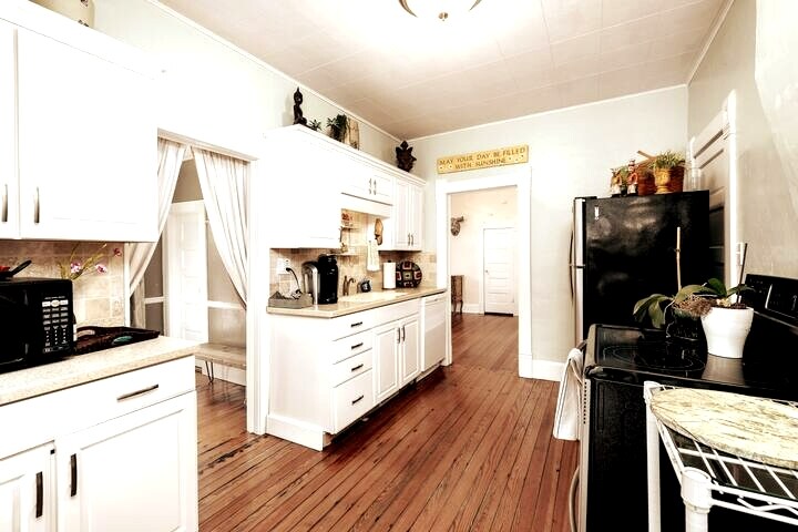 Добро пожаловать в Historic Morgue! Ужасающая атмосфера встречает вас по прибытии... история глубокая для этого здания. Это антикварное, национально признанное историческое здание предлагает антикварный декор с современным уклоном! Декор Морга, по праву...отдавая дань уважения его темной истории. Это лофт с двуспальной кроватью размера King size, полноразмерной кроватью, двуспальной кроватью и антикварным диваном(возможно, подходит для маленького ребенка). Большая кухня с небольшими сиденьями на завтрак, а также большой стол! И эта ванная!