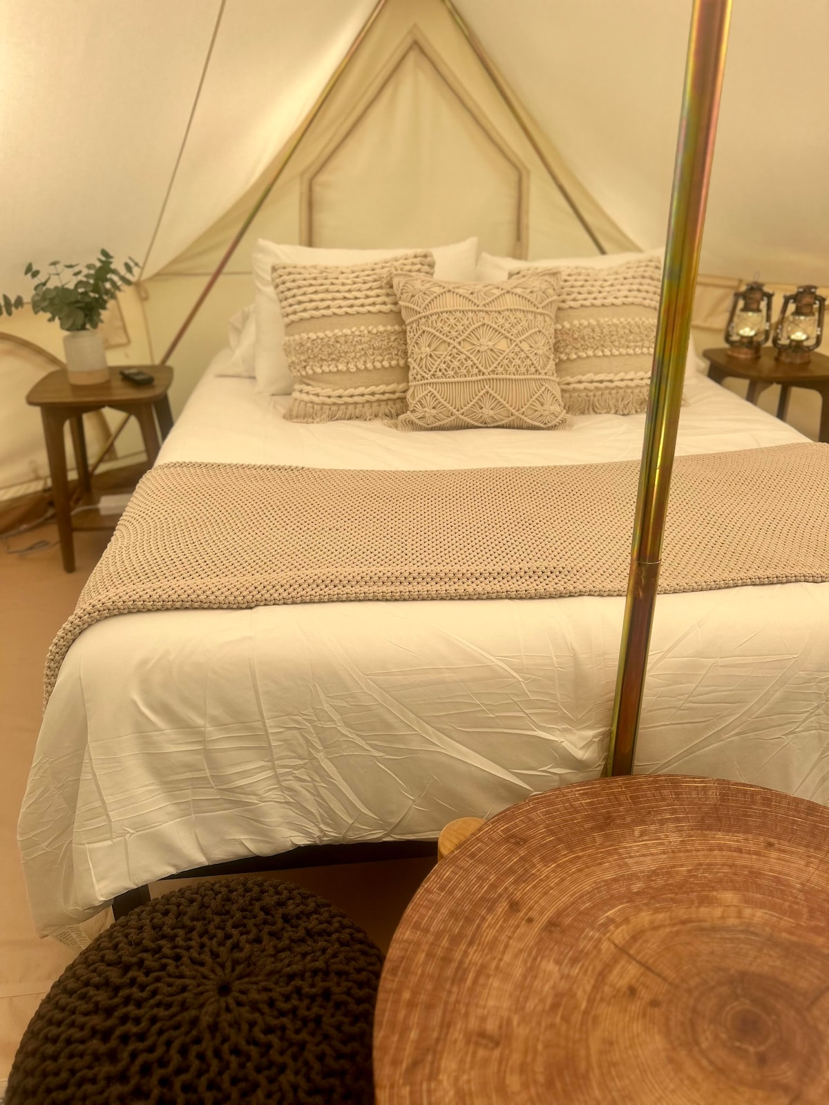 Если вы любите кемпинг, попробуйте ночь в этой палатке Bell. На набережной есть безводный туалет, большой газон с полем для гольфа с восемью лунками. Небольшой кондиционер поставляется с палаткой, но не охлаждает хорошо в дневное время, но делает это ночью, а также предоставляется обогреватель. Предоставляется полноразмерная кровать, но если вы хотите, чтобы друзья или семья принесли еще пару палаток, просто спросите и сообщите нам подробности о количестве палаток и людей.