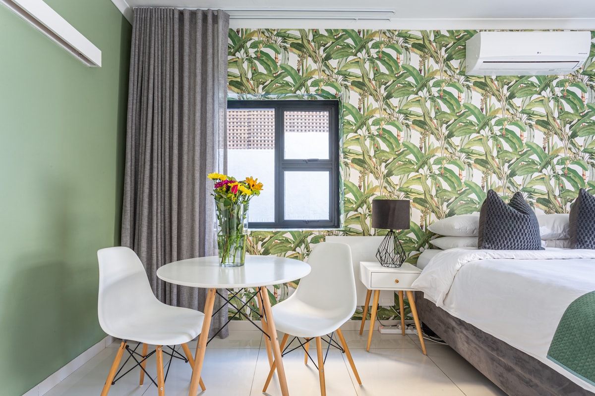 Отдохните на шезлонгах у бассейна после насыщенного дня и насладитесь видом на Столовую гору. Эта просторная современная студия выходит на ваш собственный эксклюзивный частный патио с бассейном. Прогуляйтесь по пляжу всего в 100 метрах от утренней прогулки. Для удаленной работы с нашим высокоскоростным волокном используйте кабинет в помещении или большой стол у бассейна снаружи на закрытом патио. В студии есть запасное освещение, кондиционер, Netflix и собственный закрытый парковочный отсек.