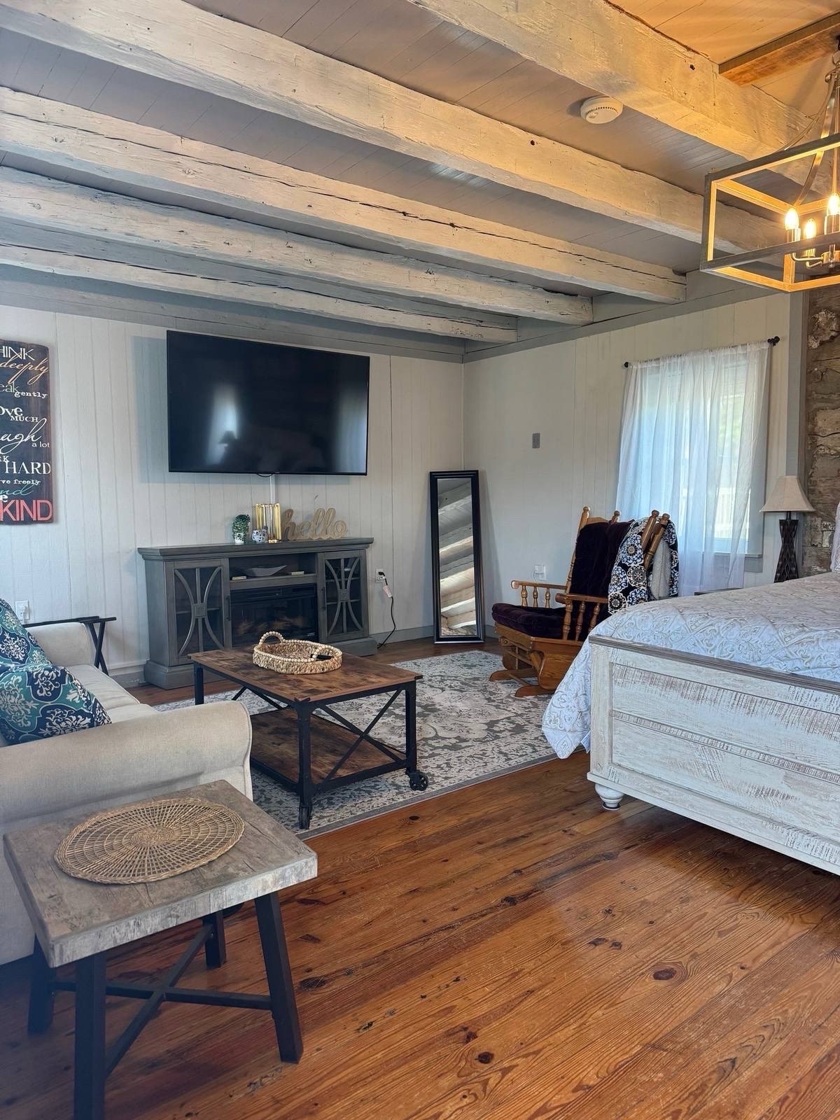 Лофт Hay Loft расположен на 43 красивых акрах с видом на нашу работающую сеноковую ферму с потрясающим видом на горы Шенандоа. Рядом есть рестораны, виноградники, антиквариат, поля сражений, гольф-курорты, горнолыжные курорты и пещеры. Просторный деревенский/роскошный люкс с газовым камином; двуспальная кровать размера King size и ванная комната с кафельным душем, кофеваркой Keurig, микроволновой печью, тостером, небольшим холодильником, морозильной камерой, посудой и газовым грилем на открытом воздухе и газовым камином. Уличный костер.