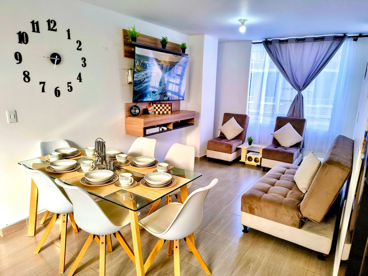 Welcome to Hridaya! Enjoy our cozy first-floor apartment, just one block from the Paipa terminal and 5 minutes from the Main Park. It features two bedrooms, two bathrooms, Internet, Netflix, Disney+, HBO, washer, and equipped kitchen. A warm and functional space thoughtfully designed with love so you feel at home. You have a private covered parking space; please note it's tight for large vehicles, but with patience, they can fit :) We look forward to hosting you!