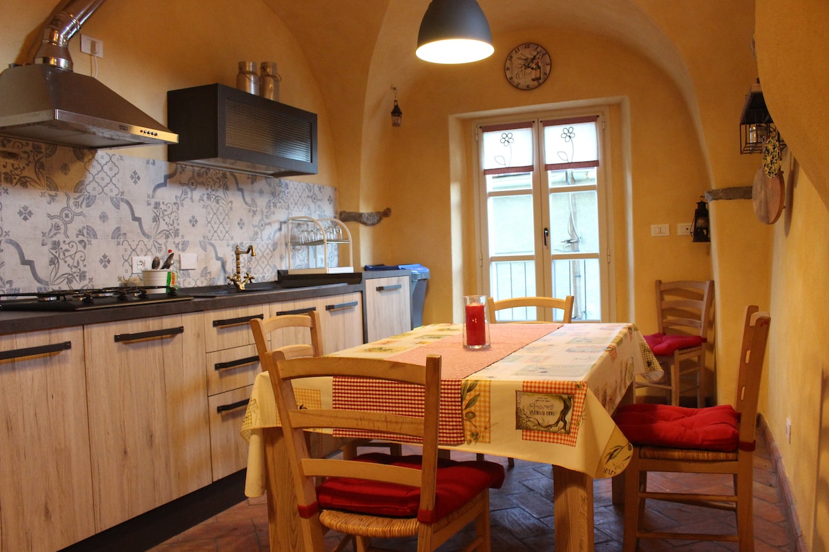 Al centro di un ampio prato ai margini del bosco, la nostra casa, un antico essiccatoio per castagne, è recentemente ristrutturata con materiali locali come pietra di Langa e castagno, integrando moderne tecnologie, aria condizionata , ricarica per auto elettriche ed un gazebo dove rilassarsi all'aperto. Nei dintorni si trovano splendidi percorsi per Mountain Bike e Trekking, mentre in mezz'ora d'auto si raggiungono il Mare Ligure e le Langhe, con i loro celebri paesaggi, vini e cucina.