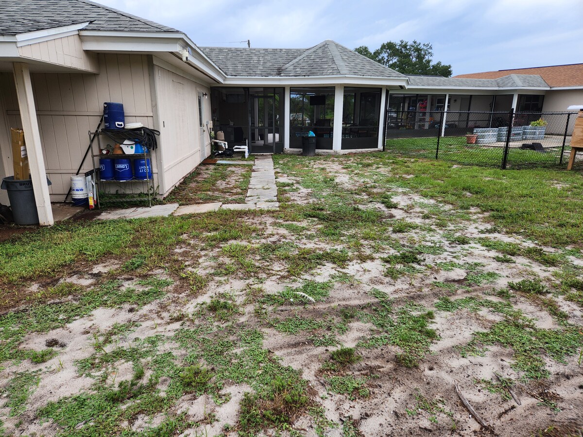 Расслабьтесь на курорте у бассейна. Отдохните на собственном крыльце с 2 ролетами. Насладитесь открытой беседкой с пропановой костровой ямой. Беседка с грилем и инструментами (некоторые на кухне). У вас есть доступ к нашему бассейну/надувным матрасам, которые находятся под боковым столиком на крыльце (обычно мы не используем бассейн вместе с гостями), полотенце/вешалка для одежды, лежак на 1 из 4 шезлонгов. Использование душа на улице. Возможно, вы также можете посмотреть космический запуск (разрешенная погода), проходящий над деревьями, глядя на север, у бассейна. Никаких детей! Проживание с домашними животными запрещено!