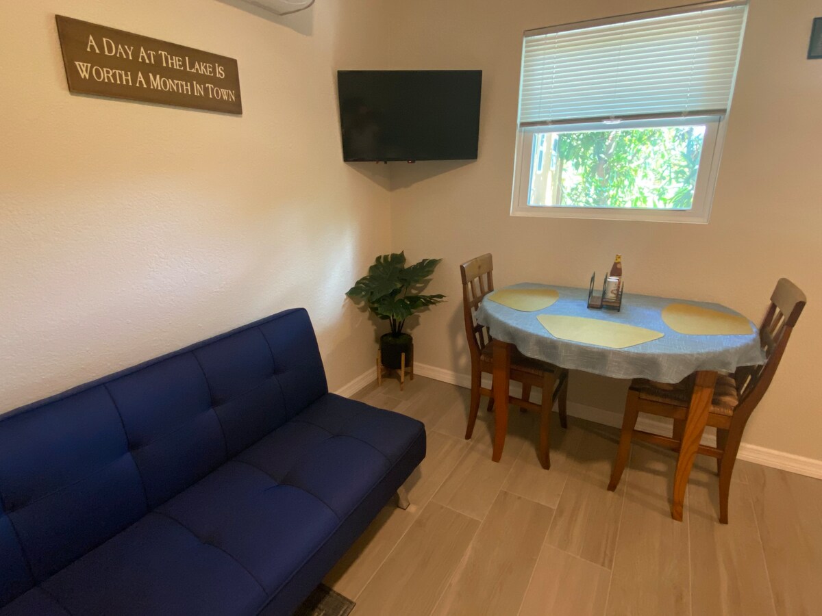 Апартаменты Orange Door Suite с деревянным домиком контрастируют с смело обновленной кухней. Все новые приборы из нержавеющей стали, кварцевые столешницы и недавно отремонтированная ванна могут похвастаться причудливым, роскошным и современным интерьером. Большие окна пропускают множество естественного солнечного света, а из них открывается живописный вид на деревья. Пейзажи под открытым небом напомнят вам о мечтательном бунгало в Ки-Уэсте!