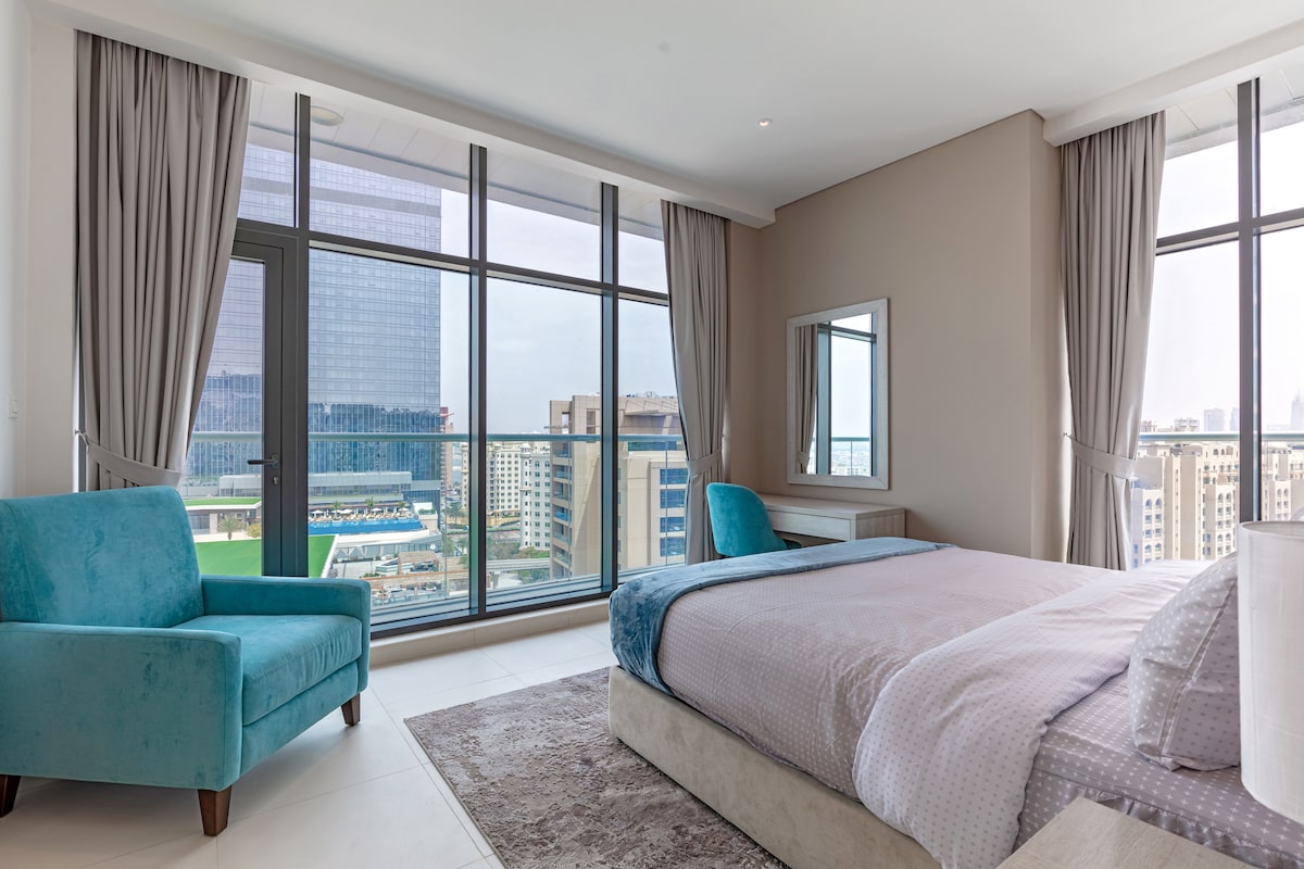 Отдохните в нашей потрясающей квартире-студии с бохо на знаменитой Палм-Джумейре. Просыпайтесь с захватывающим видом на золотой песок с сверкающим синим морем и знаменитым горизонтом Бурдж-аль-Араб и Дубай. Наслаждайтесь прямым доступом на пляж с отличными рекреационными развлечениями всего в нескольких шагах от входной двери. Хотите отдохнуть у моря, познакомиться с яркой культурой города или расслабиться и насладиться стильными кафе,ресторанами и барами Club Vista Mare!
