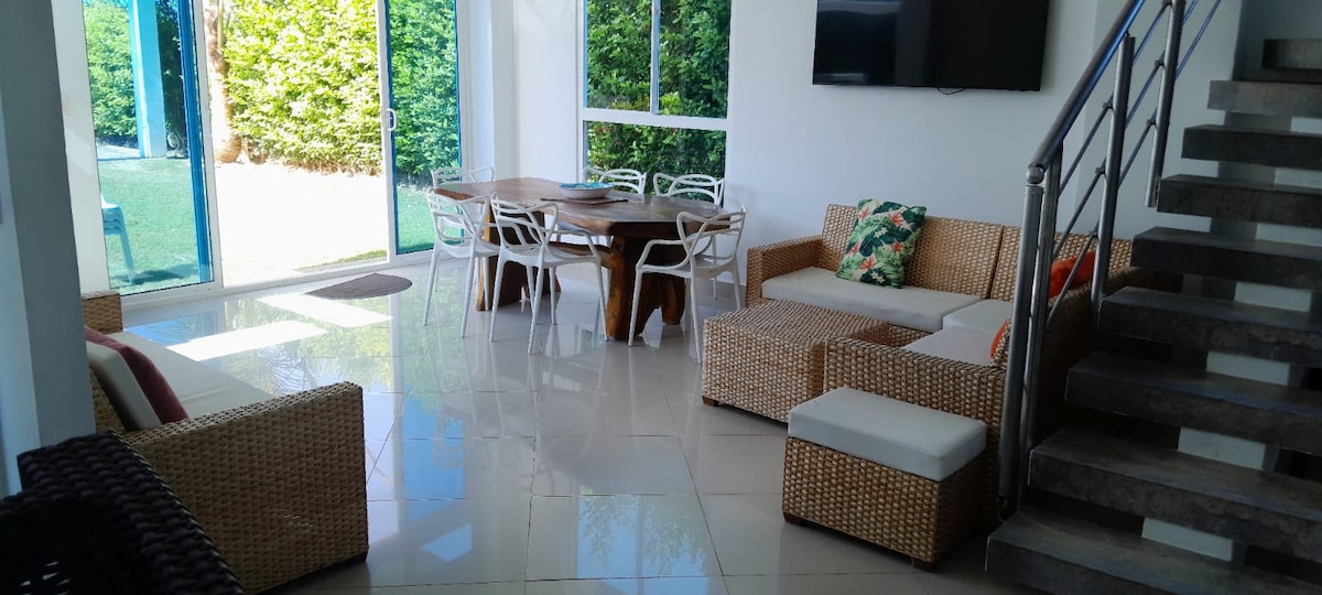 Этот домик расположен в комплекте из трех домиков, на небольшой горе с видом на море, вид и его окрестности делают это место идеальным местом для отдыха, отдыха и наслаждения природой, домик оборудован всем необходимым для вашего комфорта, он частный, и все его зоны предназначены для эксклюзивного использования нашими гостями, включая бассейн и кухню. До пляжа всего 10 минут пешком. Идеальное место для совместного использования в эксклюзивной и другой среде.
