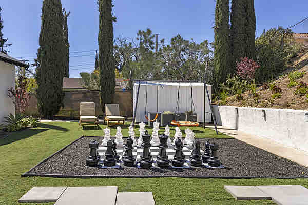 Роскошный современный ретрит с 12 кроватями и 6 спальнями и 3 ванными комнатами позволит легко разместить большую семью, группу или небольшое мероприятие. Этот тематический дом L.os Angeles рядом с Universal Studios, голливудской аллеей и волшебной горой Six Flags Magic Mountain предлагает уникальный ужин в помещении/на открытом воздухе с верхними огнями кафе. На просторном заднем дворе есть гидромассажная ванна, шахматная доска для жизни, набор качелей, костер и гриль для барбекю. Доступ к автофургону, внеуличной парковке и доступности ADA для всех желающих.