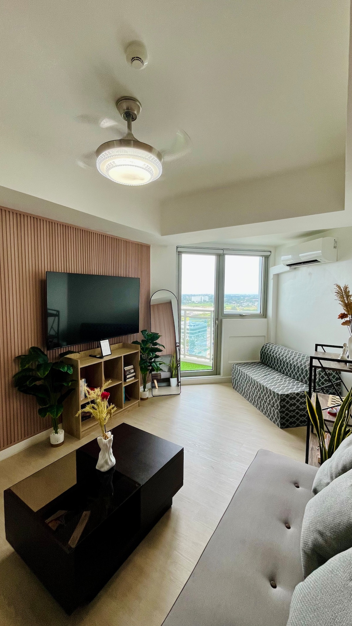 Уютный и просторный кондоминиум Azure North с расширенным балконом, освещенным теплыми огнями, идеально подходит для расслабляющих утра и прохладных ночей. Расположен в центре Пампанги, недалеко от торговых центров, ресторанов и основных достопримечательностей, что делает его идеальным местом для комфортного отдыха или короткой поездки в город. ✨