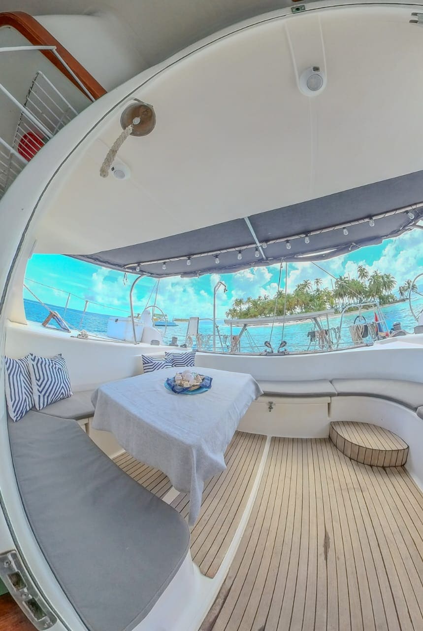 Частный круиз под парусом Плавучий дом используется совместно только с экипажем. Идеальное место для отдыха пар или семей с детьми. Здесь вам не нужно ни о чем беспокоиться, просто наслаждайтесь отдыхом. Мы принимаем на борту максимум 4 гостей, обеспечивая им пространство, комфорт и непринужденную атмосферу в любое время. Мы стремимся к экологичному проживанию в море и используем экологически чистые чистящие средства, биоразлагаемые туалетные принадлежности и безопасный для океана солнцезащитный крем, чтобы помочь защитить рифы и морскую флору и фауну Сан-Бласа.