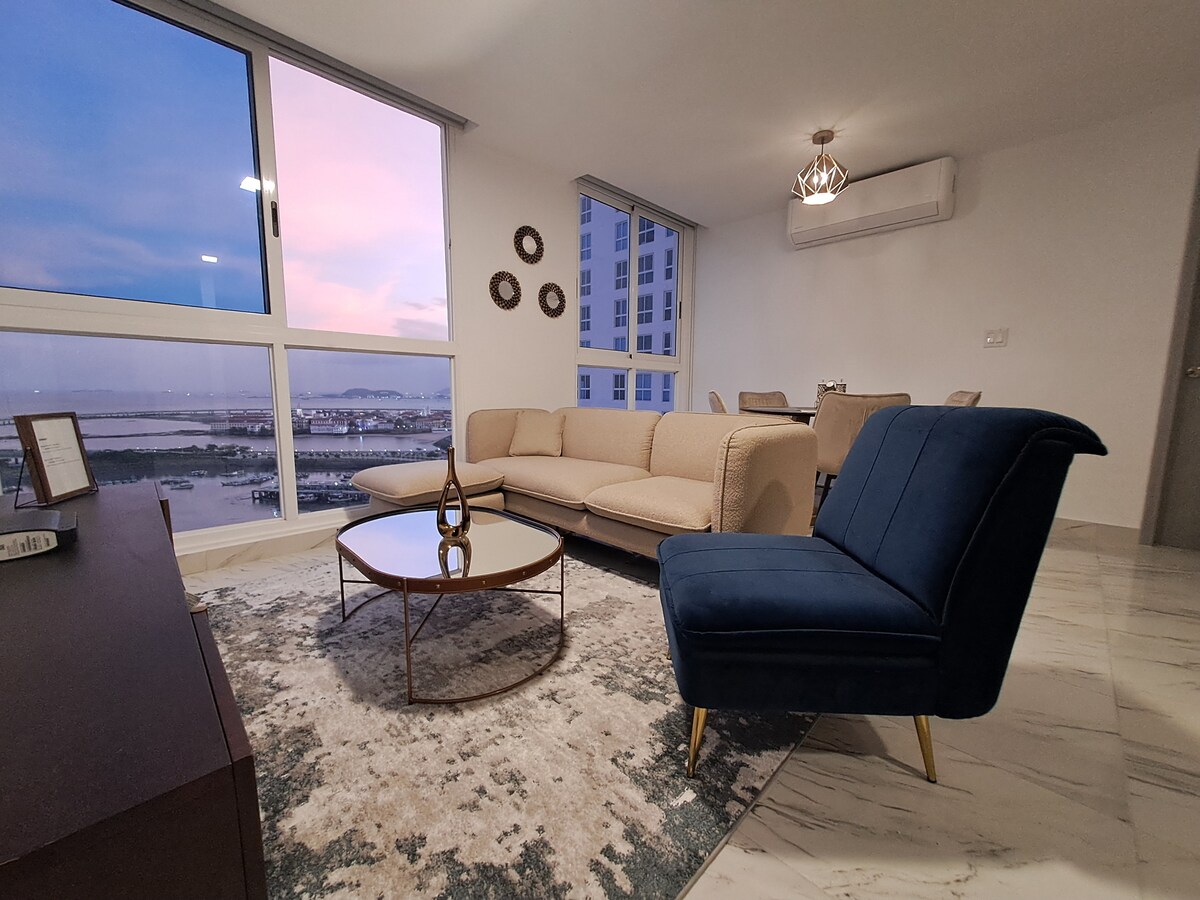 Просыпайтесь с захватывающим видом на океан в этой современной квартире на эксклюзивной авеню Бальбоа. Наслаждайтесь панорамным бассейном, лаунжем 360°, тренажерным залом, ресторанами, коворкингами и уникальными развлечениями. Всего в нескольких шагах от исторического квартала, прибрежной кольцевой дороги и рынка морепродуктов. Идеально подходит для путешественников, ищущих комфорт, дизайн и самые потрясающие виды Панамы.