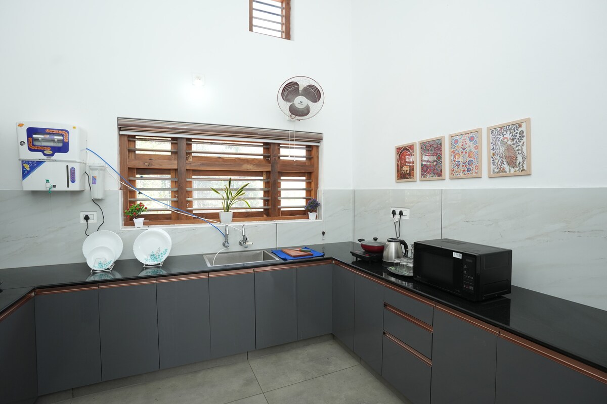 Добро пожаловать в наш дом в датском стиле! Мы Алан и Нита, инженеры-программисты, которые принесли скандинавскую элегантность в Ваянад. Наш дом сочетает в себе скандинавскую простоту с пышной зеленью нашей 5-акровой плантации каучуковых, кофейных и фруктовых деревьев. Наслаждайтесь нашим частным бассейном, окруженным тропической красотой, или отдыхайте в нашей беседке — идеальное место для утреннего кофе или вечерних бесед с видом на плантацию. Примечание: это жилье без хозяина, без смотрителя или водителя.