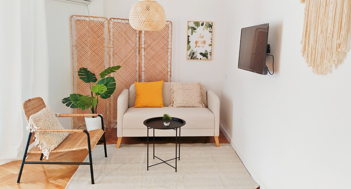 Добро пожаловать в ваш дом вдали от дома, оазис спокойствия, расположенный в оживленном центре Паграти, одного из самых любимых районов Афин. Наша студия на третьем этаже идеально расположена всего в нескольких шагах от площади Варнава и предлагает паре уникальное сочетание местного шарма, современных удобств и атмосферы, которая излучает стиль и комфорт. Высокоскоростной Wi-Fi (100 Мбит/с)! Идеально подходит для пар и одиночных путешественников, ищущих приключения в Афинах!