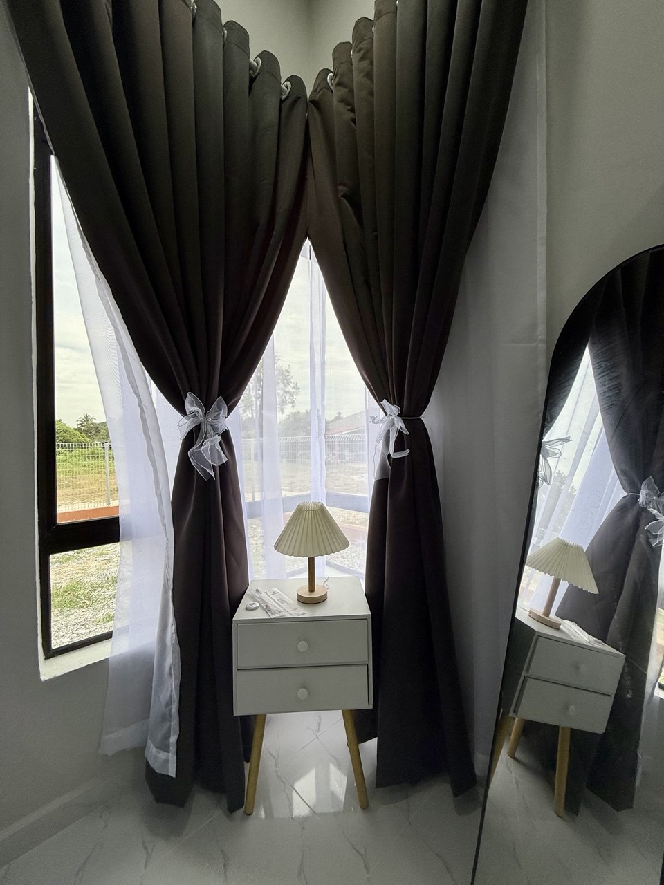 Большой и комфортабельный дом-бунгало, огороженный, имеет 3 комнаты (2 комнаты с кондиционером), 2 ванные комнаты и гостиную с кондиционером. Предоставляются дополнительные подушки, 1 односпальная кровать и 1 диван-кровать и другие удобства. Расположен рядом с пляжем Kelulut, тихий, с деревенской атмосферой и множеством достопримечательностей и удобств. Среди них причал острова Капас, парк отдыха острова Кекабу, равнина Бату-Пути, фуд-корт, Bdr Marang с различными удобствами. Рынок Паянг и другие.
