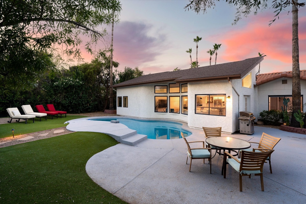 Все, что я могу сказать, это то, что это то, что это взорвет ваш разум. Этот современный дом оснащен почти всем: роскошной мебелью, всеми умными устройствами, уединением с собственным бассейном и красивой улицей с тоннами пальм, расположенных в центре Старого города Скоттсдейла и Аркадии. В радиусе 2 кварталов у вас есть одни из лучших ресторанов AZ, включая North, LGO, Steak 44 и т. д. Обратите внимание, что бассейн можно подогреть за плату в размере 50 долларов за ночь.