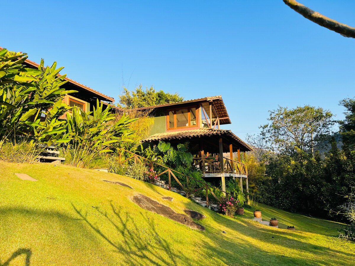Casa no meio das montanhas com vista deslumbrante, cachoeiras próximas e um rio particular. Se vc quer se desligar, descansar e curtir a natureza, tomar um vinho em frente à lareira, aqui vc vai encontrar paz. A casa tem duas suítes com edredom e travesseiros de pluma. A suíte master tem uma lareira, banheira e uma varanda, a segunda suíte tem uma vista linda. A sala tem uma lareira, toda de vidro com cozinha americana e varanda com redes. A casa tem rio particular e lindas cachoeiras próximas.
