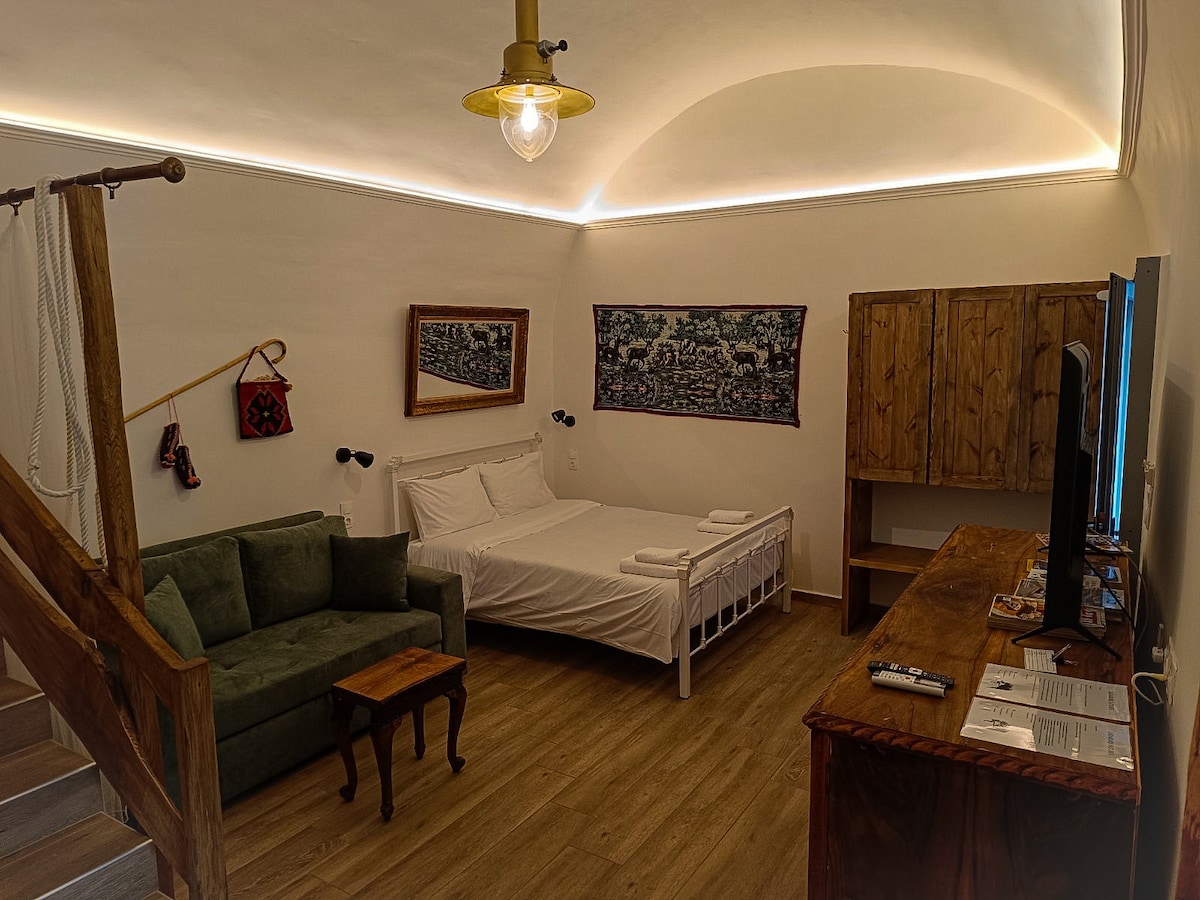 Enjoy an experience full of style in this place located in the old town of Nafplio. The 50 sq. m. apartment "Avli" can accommodate 2 people and has a capacity for an extra two. Ideal for a couple or a small family. The 19th century building has been fully renovated and offers all modern day comforts. A small backyard is an oasis away from the city's noise.