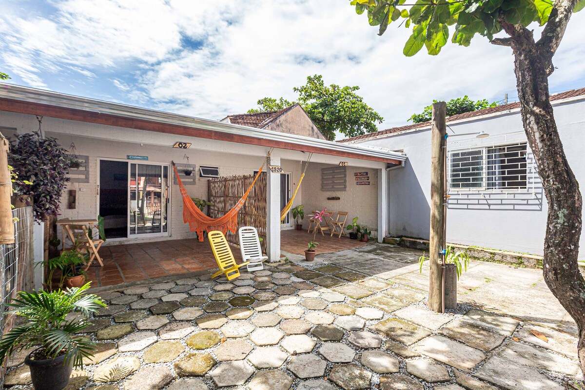 Relaxe neste lugar único e tranquilo a apenas 160 metros da praia. ☀️🏖️🌊 Suite com cama casal, roupa de cama, ventilador no teto, banheiro exclusivo, frigobar, cafeteira, sanduicheira, chaleira elétrica, espaço para refeições e rede. Check-in e check-out flexíveis!