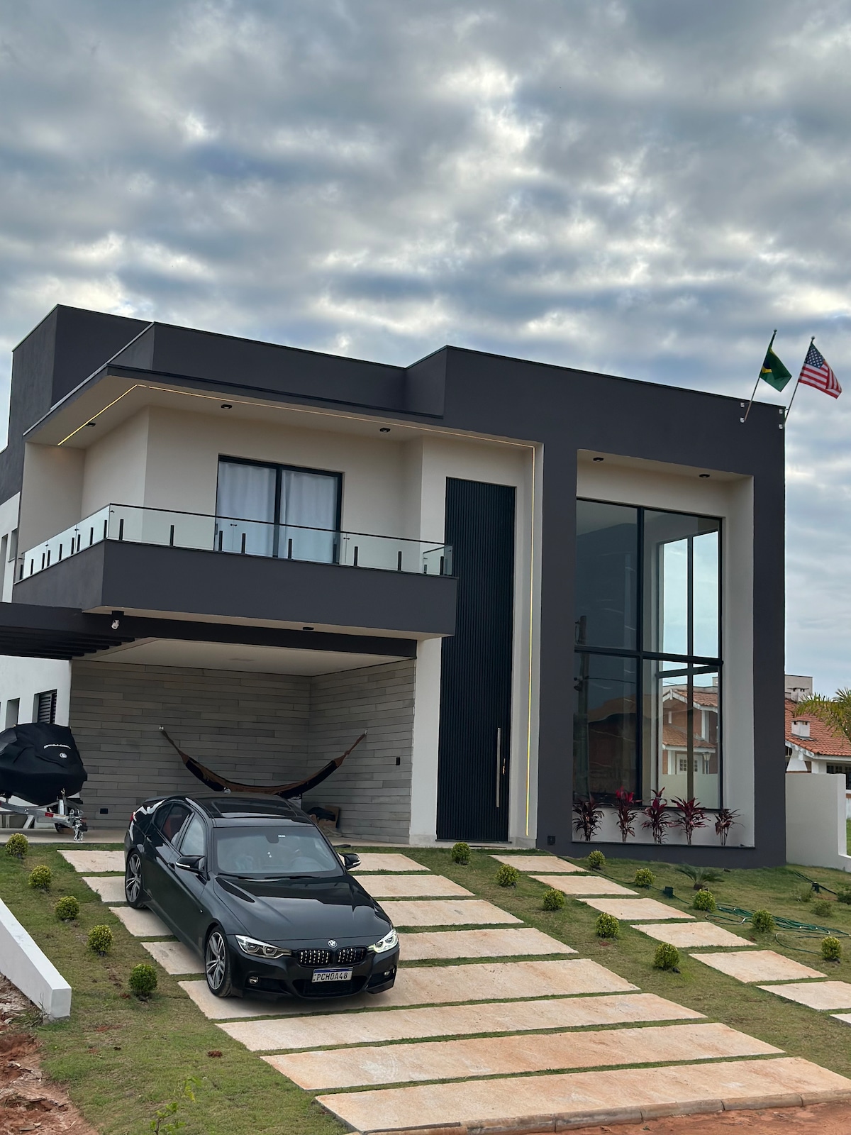 Просторный дом на краю плотины, в закрытом сообществе всего 28 лотов. Проект, выполненный Ambienta Arquitetura (престижным журналом Arquitetura e Construção и другими) с площадью 3900 кв. м земли, 516 кв. м, стандартным бассейном и небольшим бассейном с подогревом (электрический обогреватель), батутом, слэклайн, каяк, сапсерфинг и барбекю. 5 люксов (все с кондиционером) и еще один туалет. Вместимость комфортного размещения 14 человек плюс малыш.