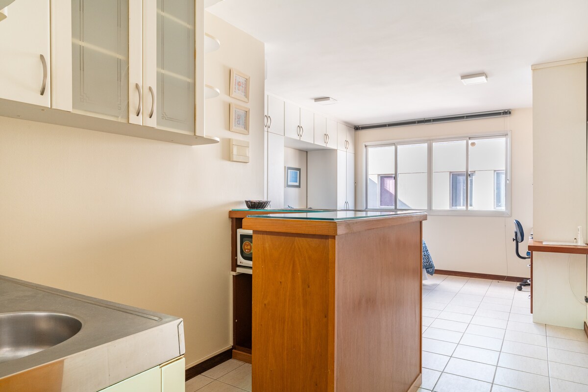 Уютная и полностью оборудованная студия площадью 43 м² в районе Sudoeste, рядом с пекарнями, рынками, аптеками, банками, ресторанами, барами и остановками такси/автобусов. До многих мест и туристических достопримечательностей можно дойти пешком. К услугам гостей полностью оборудованная кухня, кондиционер, кабельное телевидение, Wi-Fi, удобная кровать и стиральная/сушильная машина. В здании работает круглосуточный швейцар. Идеально подходит для одного человека или пары. Идеально подходит для краткосрочных и среднесрочных бронирований. Примечание: я не предлагаю долгосрочные контракты или бронирования вне платформы ;)