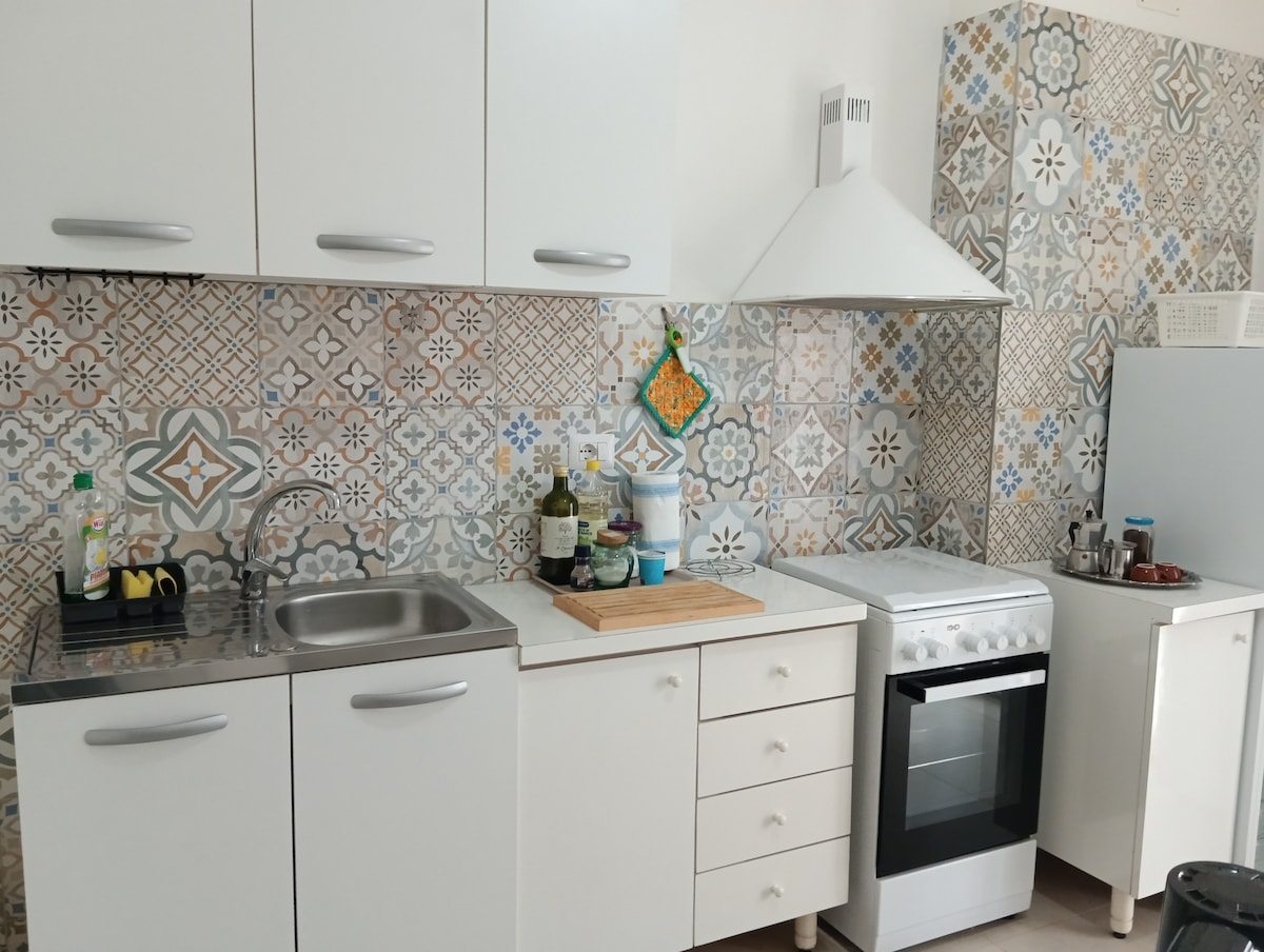 Intera casa . Splendido bilocale ubicato nel centro storico del paese con terrazza di oltre 30 mq a picco sul mare . L'appartamento è costituito da un angolo cottura , un salotto con divano letto, una camera matrimoniale e un bagno con doccia . La terrazza è arredata con tavolo, sedie , ombrellone e lettini prendisole .