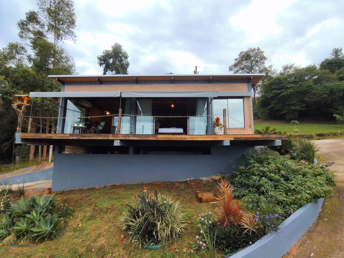 Relaxe neste espaço calmo e cheio de estilo com vista para o lago. Integração total com a natureza, uma verdade experiência! Essa cabana conta com todas as facilidades para uma hospedagem agradável e confortável. O espaço, com decoraçao moderna, conta com cozinha completa, Wi-Fi, TV, sofá cama e banheira externa. Acomoda confortavelmente um casal. Estamos localizados na zona rural de Novo Hamburgo, em condomínio fechado, ideal para quem busca contato com a natureza, com segurança e conforto.