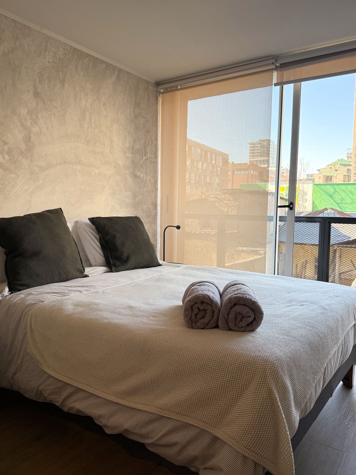 Apartamento moderno elegante y productos excelente calidad, con un diseño acogedor, aire acondicionado, cocina equipada, WiFi rápido y un cómodo dormitorio más sofá cama. Ubicado en el corazón turístico de Santiago, cerca de restaurantes, museos y atractivos imperdibles. Ideal para viajes de placer o trabajo, con todo lo necesario para una estadía cómoda y conectada.
