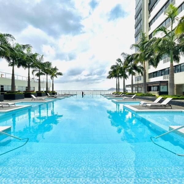 ✅ Красивый люкс на 8-м этаже здания River Front Building №1 с впечатляющим балконом и панорамным видом на сектор Пуэрто-Санта-Ана. 🛏️ Кровать размера King size (3 места) с постельным бельем из 100% хлопка и 2-местным диваном-кроватью, идеально подходит для пар или семей. 🍳 Оборудованная кухня. Стиральная и сушильная машины внутри жилья, горячая вода, высокоскоростной Интернет, платное телевидение и подземная парковка. 🏊♂️ Круглосуточная охрана и удобства: бассейн, джакузи, сауна и тренажерный зал. ✨ 10 минут до аэропорта.