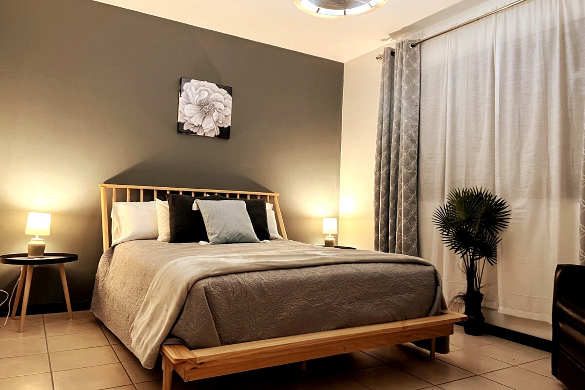 Добро пожаловать в ваш идеальный дом в CR! Наша комфортабельная квартира в новом здании идеально расположена всего в 12 минутах от аэропорта Сан-Хосе, что делает ее идеальным местом для начала или завершения вашего коста-риканского приключения. Рассчитано на 2 гостей с бесплатным самостоятельным заездом и бесплатной и безопасной парковкой на территории. Из окон на втором этаже открывается потрясающий вид на закаты и горы. К услугам гостей собственная ванная комната, полностью оборудованная кухня и высокоскоростной Wi-Fi.