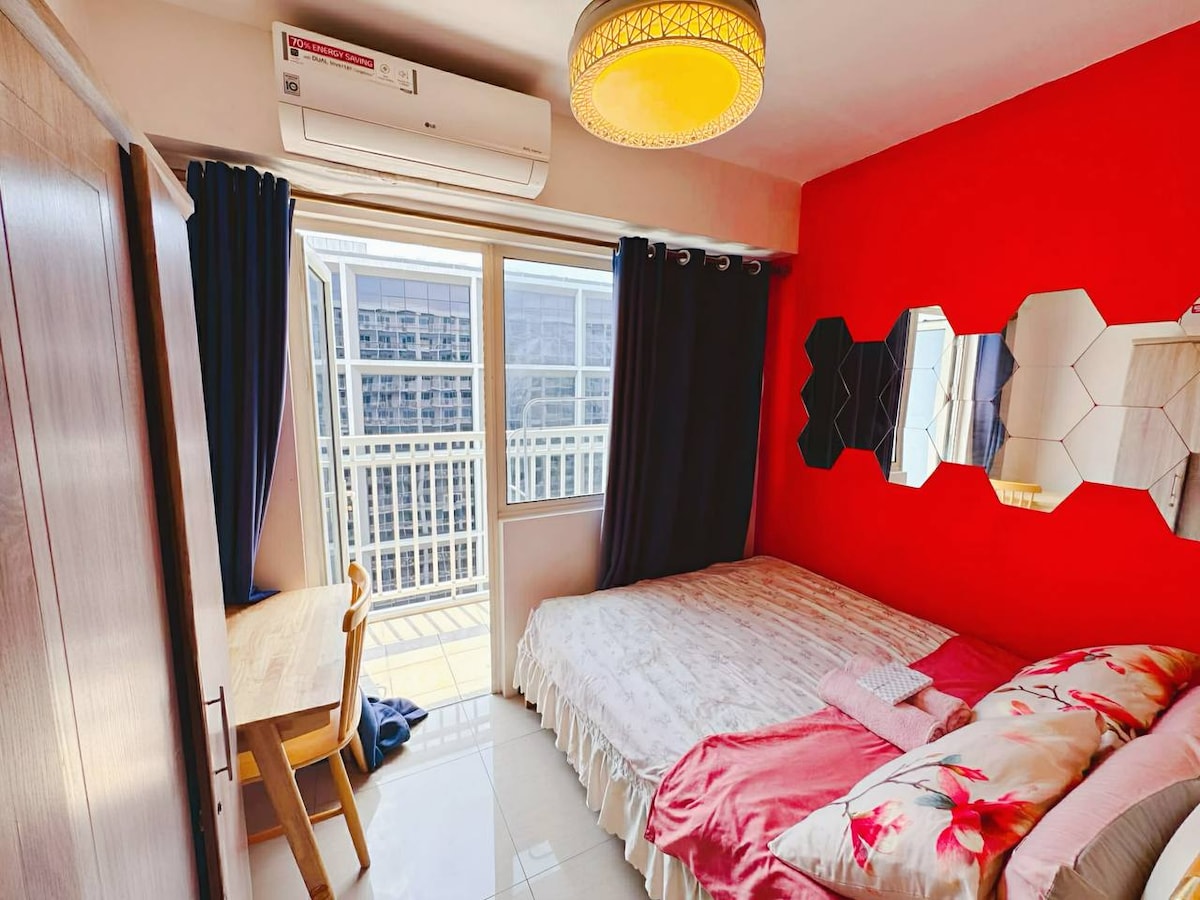 Насладитесь спокойствием в Пасай-Сити в нашем городском оазисе, идеально подходящем для пар, соло-путешественников и удаленных работников. Расслабьтесь с быстрым интернетом, уютной гостиной и полностью оборудованной кухней. Кровать размера Queen size с премиальным матрасом, постельное белье гарантирует спокойные ночи, а в ванной комнате есть биде и душ с горячей водой. ваше спокойствие, комфорт и благополучие для нас важнее всего. Посетите близлежащие кафе, рестораны и торговый центр Mall of Asia. Бронируйте сейчас или свяжитесь с хозяевами Милин и Бэт по любым вопросам.
