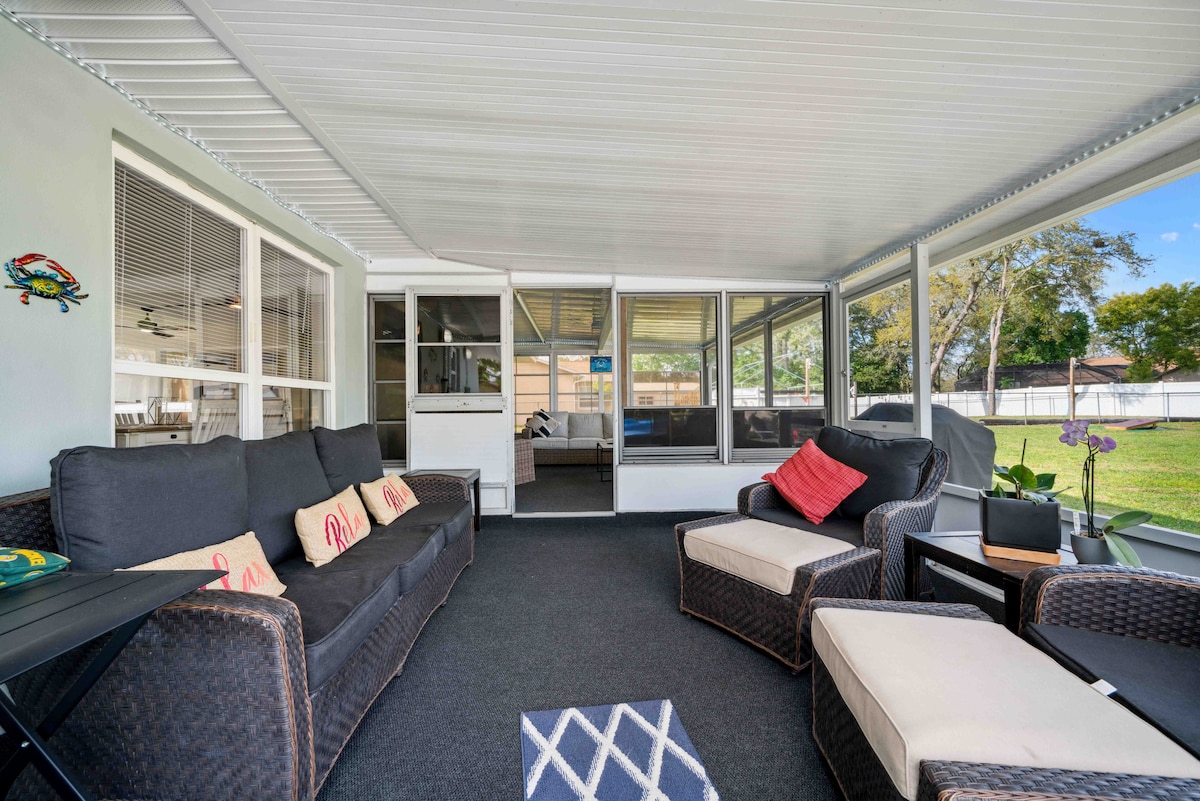 Запомнитесь на этом уникальном и семейном кусочке рая. Жилье расположено на озере Энн площадью 100 акров, в 20 минутах от красивых пляжей Мексиканского залива. Наслаждайтесь захватывающими закатами у костра. Каякинг, сапсерфинг (включено) или рыба с причала. Или посидите и расслабьтесь в экранированном патио с любимым напитком в баре на открытом воздухе. Или отправляйтесь в красивый центр Тампы и насладитесь Buccaneers, Tampa Bay Lightning или бейсбольной командой Rays