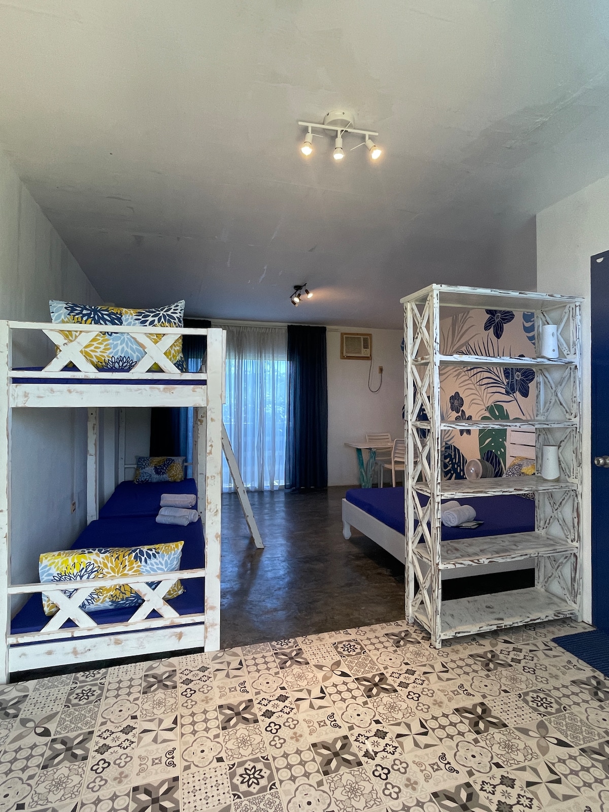 Located beachfront in Patar, Bolinao, Pangasinan this poolside unit offers a tranquil coastal escape. You’ll fall asleep to the sound of crashing waves and wake up to sea breezes through floor-to-ceiling windows . • Bedrooms: 1 • Bathrooms: 1 • Sleeps: 7 to 8 guests (8th guest will use floor mattress) • Type: Entire unit with shared pool access • Kitchenette – perfect for preparing home-style meals, No corkage fee •Parking space provided on-site