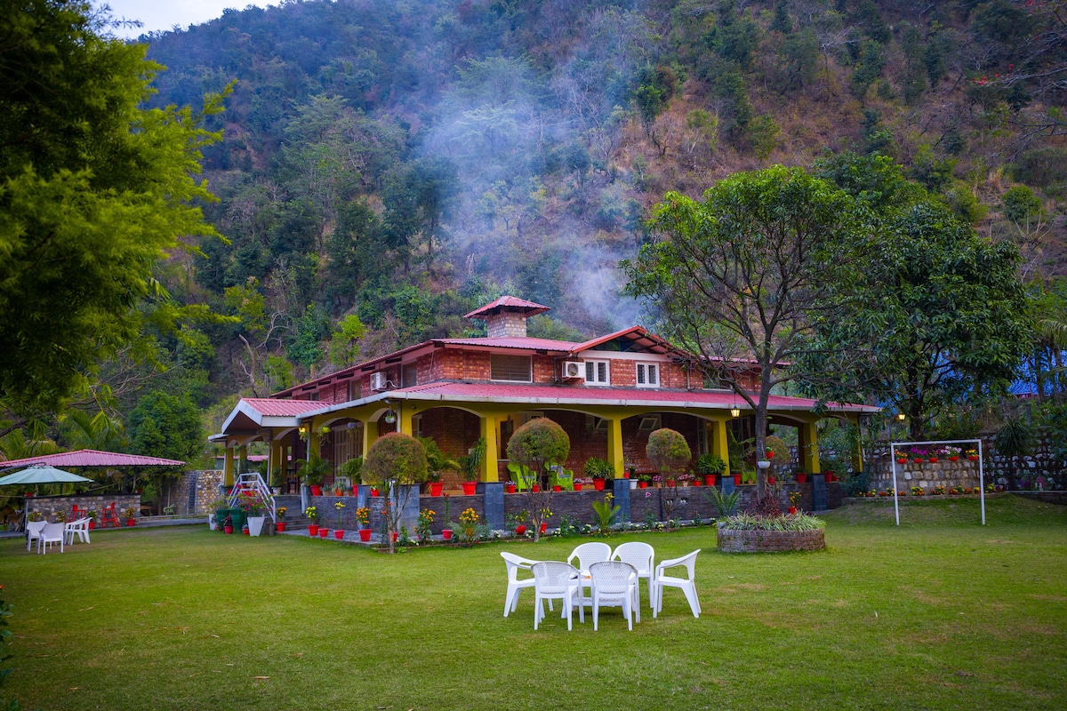 Добро пожаловать на виллу Neelkanth Raiwala. Вилла, расположенная на берегу Ганга, предлагает спокойный и спокойный отдых. Это отдельная вилла с огромным частным садом в 500 ярдах с 3 спальнями, каждая из которых со вкусом оформлена и полностью оборудована всеми удобствами, такими как кондиционер, телевизор, кухня, холодильник, Wi-Fi, идеально подходит для семьи, друзей и пар. Можно с домашними животными. Вы также можете насладиться свежими органическими овощами из нашего собственного огорода. Приезжайте всей семьей, включая четвероногих, и наслаждайтесь.