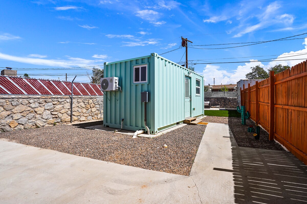 Welcome to our charming shipping container home, a cozy retreat nestled in the heart of nature. This unique abode offers a blend of modern comfort and charm, perfect for those seeking a relaxing getaway. Located an hour from Big Bend National Park and minutes away from Alpine offers travelers easy access to both the park and town. You will be sure to get a phenomenal nights sleep on the super comfy memory foam bed. Wake up feeling refreshed and step up to the top deck for your morning coffee.