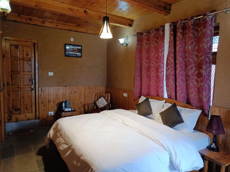 🏡 Насладитесь горным спокойствием в Рубару - месте, где вам понравится ❤️ Отдохните в нашем просторном деревянном коттедже с плюшевой двуспальной кроватью размера King size и уникальным L-образным балконом с двойными точками входа. Из вашего номера, расположенного на первом этаже нашей горной виллы, открывается вид на восход солнца и отдаленные вершины. Почувствуйте идеальное сочетание деревенского очарования и комфорта. Наслаждайтесь домашними блюдами, звездными ночами ✨и подлинным горным гостеприимством в нашей спокойной деревне недалеко от Джибхи 🌄