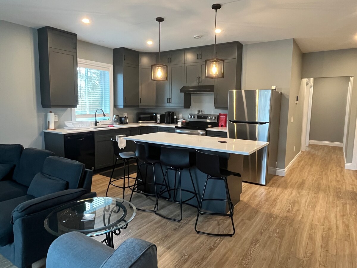 Расслабьтесь и насладитесь нашим просторным, новым жильем с двумя спальнями на нижнем уровне в одном из новых районов Петававаса. Отдельный вход рядом со всеми удобствами, включая CFB Petawawa, CNL, рестораны, аптеки, продуктовый магазин и парки. 1 двуспальная кровать размера King size, 1 двуспальная кровать размера Queen size, а также полноразмерная кухня, каменные столешницы и бытовая техника из нержавеющей стали. Насладитесь бесплатным кофе или чаем Nespresso, а также некоторыми предметами первой необходимости, чтобы начать ваше пребывание у нас.